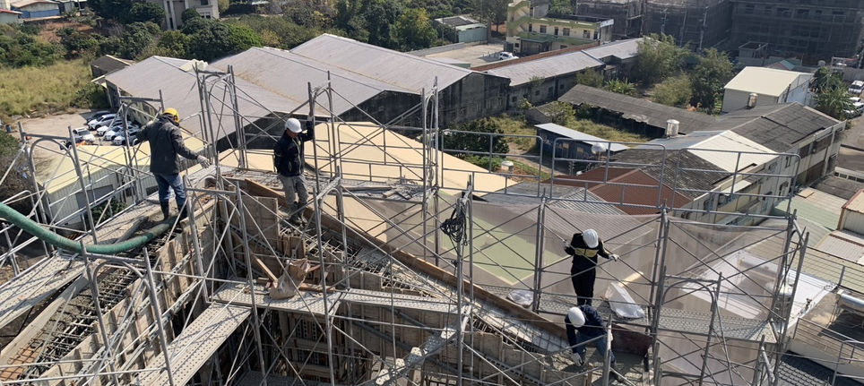A照乙區屋突頂層結構施工(含鋼筋、模板、水電、鷹架、RC...等)、B1-2F油漆批土、油漆底漆噴塗、室內輕隔間放樣、室內配管穿線、室內消防管線配置、污水管線施工...等E照:滯洪池結構施工(含放樣、擋土支撐、開挖、鋼筋、模板、水電...等)