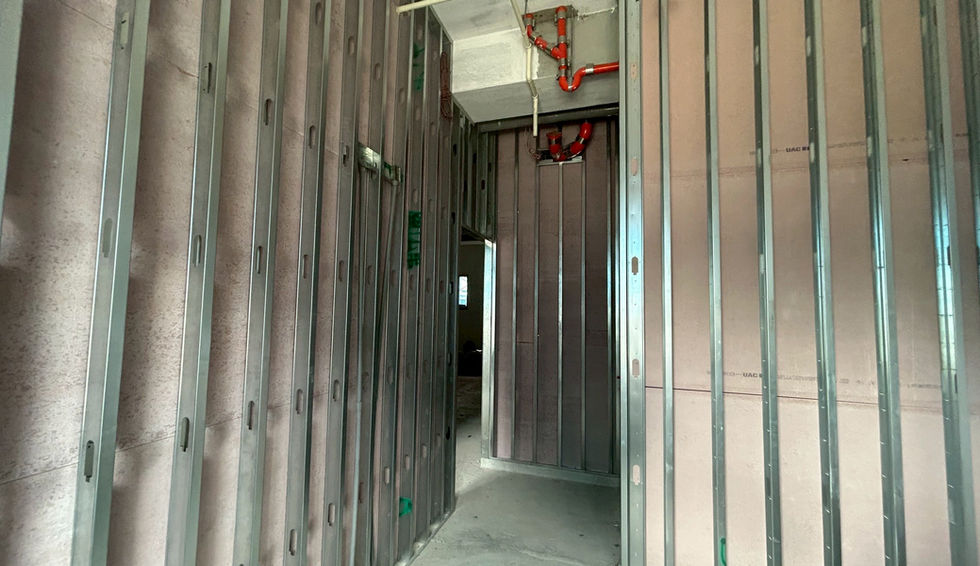 含陽露台地磚、一樓花台PU、一樓公設輕隔間、抿石子施工、一樓石材安裝、梯廳牆面磁磚、梯廳天花板、電線安裝...等