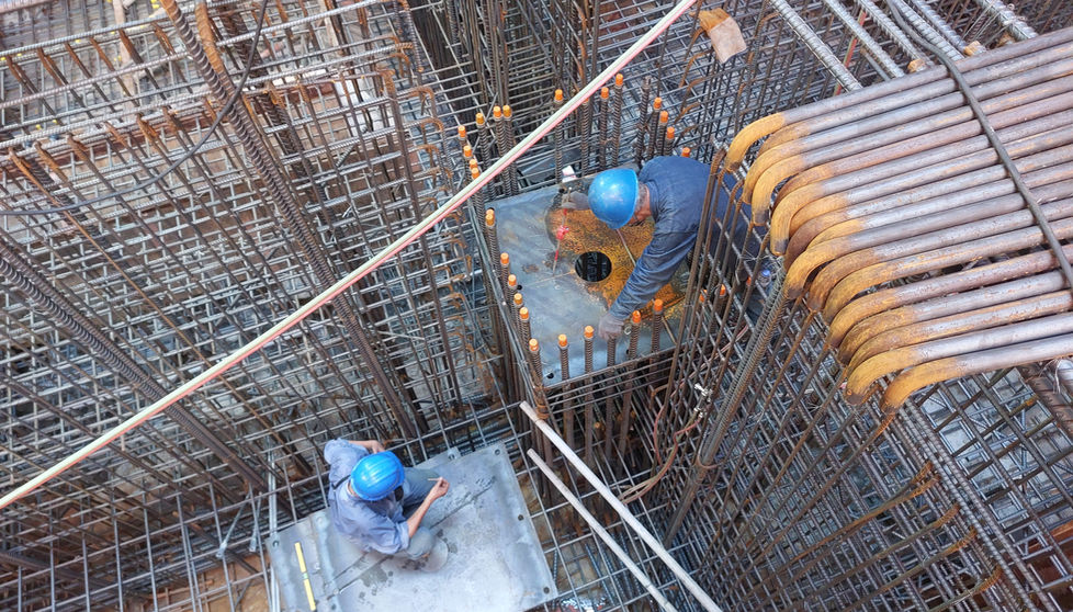 基礎地梁(鋼筋、模板、水電、基礎螺栓)、大底 結構施工、鋼柱工廠加工及現場吊裝